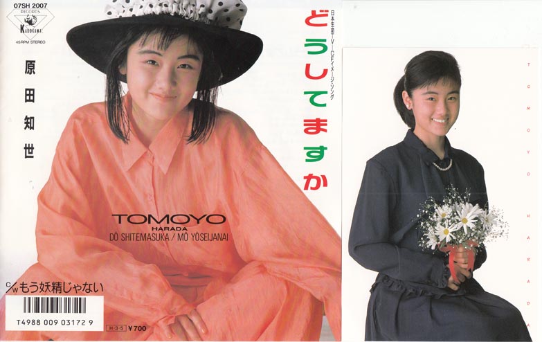 まぁ国語的には「どうしていますか」でしょうけどね。ワードとかで書くと下に波線がつきますねぇ。い抜き言葉ですね。でもいいんです。知世さんはかわいいので。これは7枚目のシングル。岩見沢で原田知世さんのシングルしこたま買った時もこのシングルはなかったと思う。もちろんクリアーレコード。力が入ってますねぇ。白いお花を持っているほうはおまけのカード。