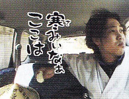 んな 餅ぐらいで怒るなよ、とうれしーに言われた後、後部座席に座って、うれしーのクリームパンを食べる洋さん。藤やんに「食うんじゃないよ」言われてもお構いなしの洋さんに「欲望の塊だもん。まだまだ」と小言を言われても、「寒みぃなぁここは」とどこ吹く風の洋さん。いいシーンですね。