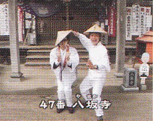 浄瑠璃寺のすぐ近くにあります。八坂寺と言ったら、洋さんの笠に手が当たって、リーダーは楽しそうですが、洋さんは少しむっとしている、って言う感じですね。逆うちではこの後岩屋寺に行くのでその話も出てましたね。