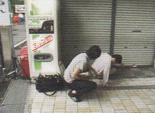 汗をかいたので道後温泉に入りたいということで、荷物を取りいこうと走って行ったら、売店の前で転んでしまった洋さんです。この後「帰してくれんかぁ」っていうんですよね。写ルンですの自動販売機がいいですね。もうないだろうなぁ。