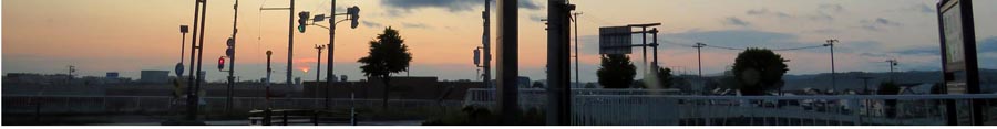 早朝の西6号線、南大通り交差点手前、無加川に架かる豊大橋から北見駅方向。