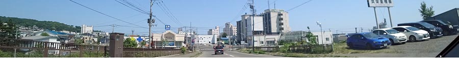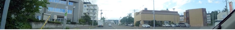昭和通り(北見環状線)を若葉側から北見工大方向。左の黄色の建物は老人保健施設の緑風。