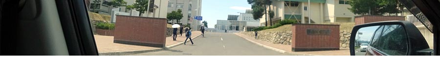 北見工業大学の正門。写真左が夕陽ケ丘通り側。