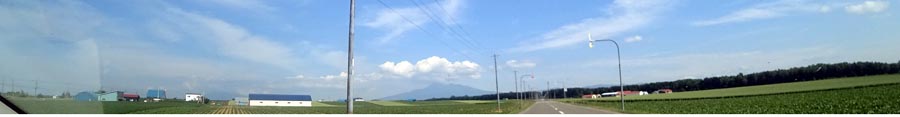 小清水から清里に向かう道路。写真奥に見えるのが斜里岳。