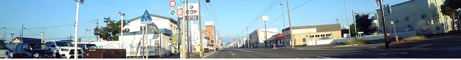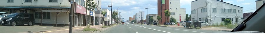 | 西6号線、メッセ前から京セラ北見工場方向。写真左が北見駅側。 |