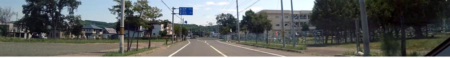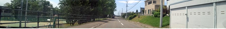 | 東陵運動公園裏の通りを北見工大側から仁頃通り方向。写真左はテニスコート、写真右が東陵中学校側。 |