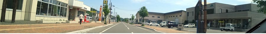 | 置戸町大通り、置戸郵便局前から置戸小学校方向。写真右がJA、写真奥は北見方向。 |