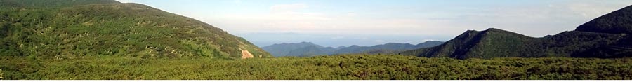 | 知床峠駐車場向かいの展望所から、かすかに見える国後島方向。写真右手が羅臼側。 |