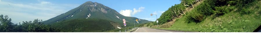 | ウトロ側から知床峠駐車場に向かう途中。前方は羅臼岳。 |