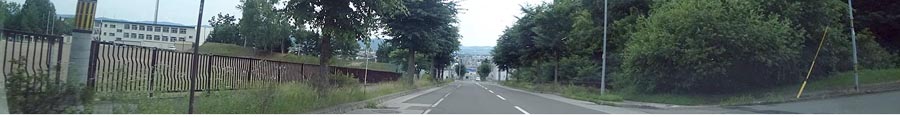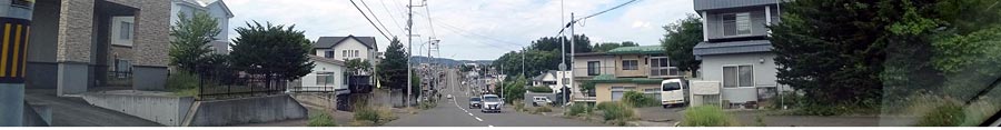 | 昭和通り、高栄中学校グラウンド横の下り坂。写真奥が国道39号・メッセ方向。 |
