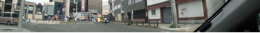 | 青葉通り、大通り東9丁目交差点。進行方向奥に東小学校、写真左が北見駅側。 |