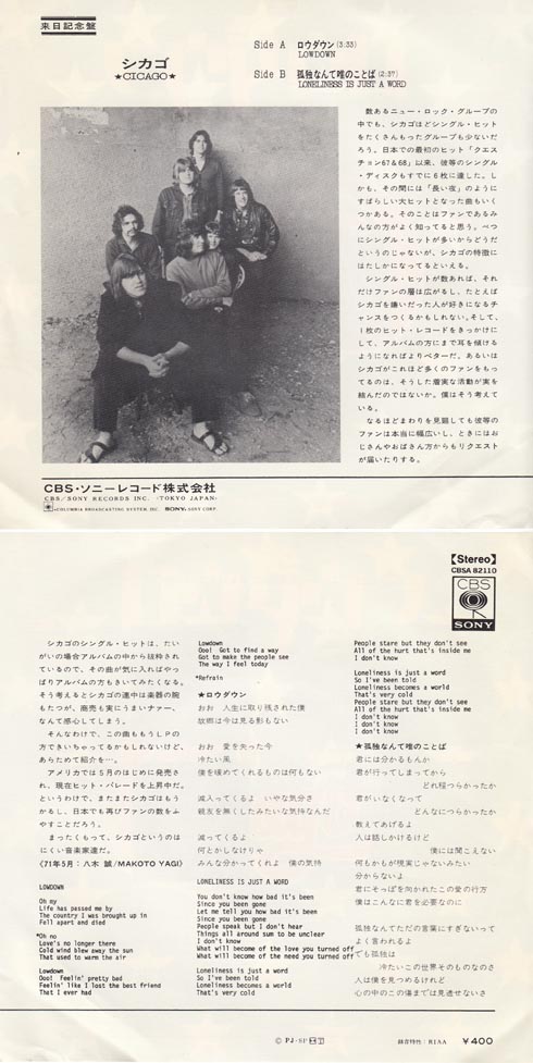 シカゴはニューロックグループだったんですね。それにしても解説がお粗末すぎる。シングルがヒットしていてアルバムも売れて商売がうまいとか、なんじゃこれ。きっと曲を聴く前に書かされたなぁ。かわいそうに。シカゴってアルバム1枚目から3枚目まで2枚組で出してたから値段が高くてみなさん買えなかったのかもね。だからシングルが売れたのかも。この曲もシカゴ3だからね2枚組の1曲。
