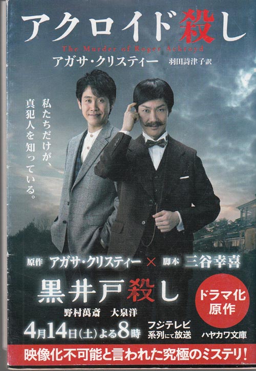 | アクロイド殺し アガサクリスティーの名作。当時は語り手が犯人というのがありかなしかでもめたらしいですね。表紙は三谷さんの黒井戸殺しになってますが中身はアクロイド殺しです。これは放送当時録画していたのですが、毎週予約していたファッション通信という番組が録画されて最後のシーンが録画されていなかったんです。がっかりして、見ないで消してしまいました。長らくDVDを買いたかったのですがヤフオクでも高くあきらめていましたら、TVerでやっていましたのでしっかり見れました。大変面白かった。オリエント急行のほうは長すぎてあきちゃいましたが、これはよくまとまっていた。こちらも名作ですね。ただフジテレビだからなぁ。Unextではやってくれないだろうなぁ。 |